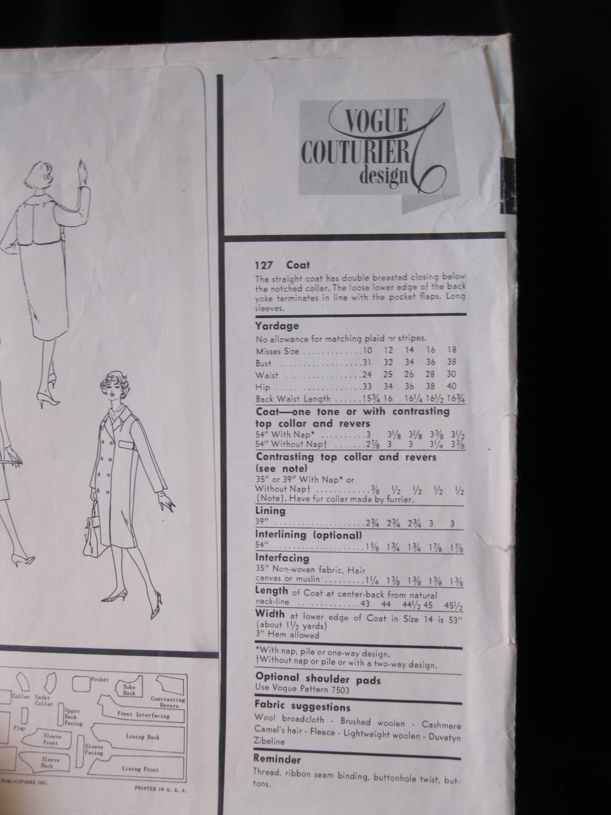 Retro Size 16 Vogue Couturier Design 127 Double Breasted Etsy Denmark